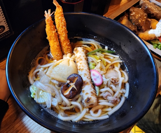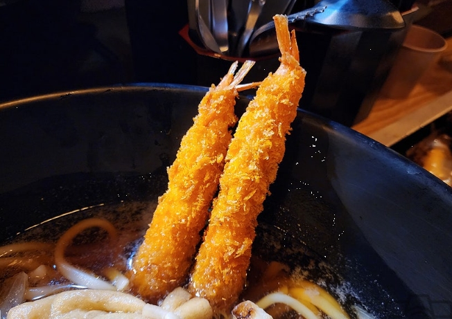 왕새우 튀김우동 – 큼직한 새우와 깊은 육수의 조화