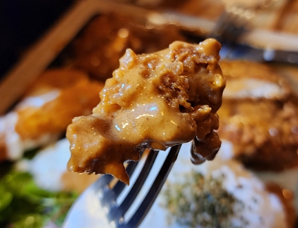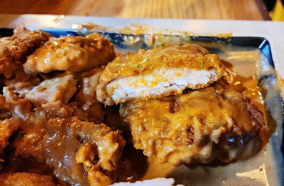 깊고 진한 데미그라스 소스가 일품. 돈까스 위에 듬뿍 뿌려진 데미그라스 소스는 깊고 진한 맛이 인상적이었어요. 너무 달지도 않고 적당한 감칠맛이 있어서 돈까스의 풍미를 더욱 살려주었어요.