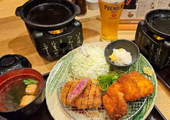 규카츠와 칸부리카츠 정식 (2,519엔) – 겨울 한정 메뉴