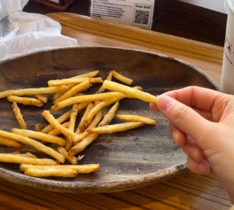 감자튀김도 적당히 두껍고 바삭해서 너무 맛있었어요. 다만, 처음에는 케첩이 없어서 아쉬웠는데, 나중에 보니 셀프바에서 직접 가져와야 하는 시스템이더라고요.