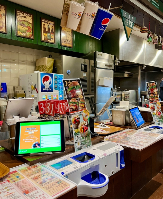 계산은 일본 특유의 셀프 계산기를 사용했어요. 동전을 한꺼번에 부어도 자동으로 인식해서 계산해 주는 기계라서 신기했어요.
