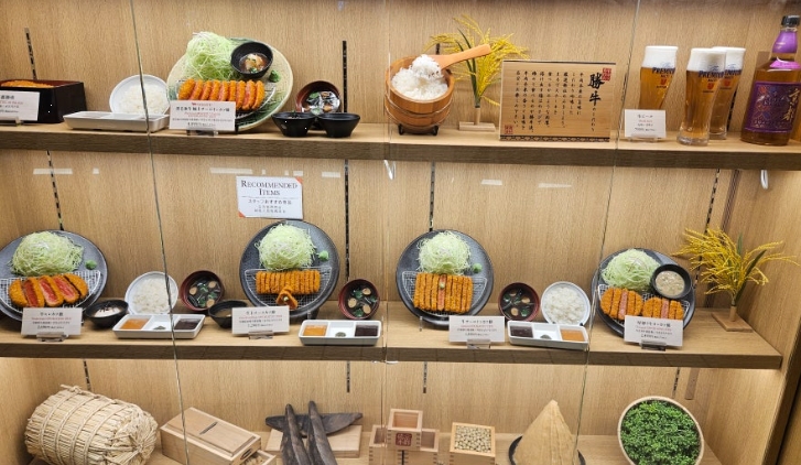 가게 앞에 실물 크기의 음식 모형이 전시되어 있어 메뉴 선택이 한결 쉬웠어요. 일본은 이런 음식 모형을 정말 정교하게 잘 만들더라고요. 메뉴판을 보면서 주문했는데, 고민될 땐 그냥 "이치방 인기(제일 인기 있는 메뉴) 주세요." 하면 끝.