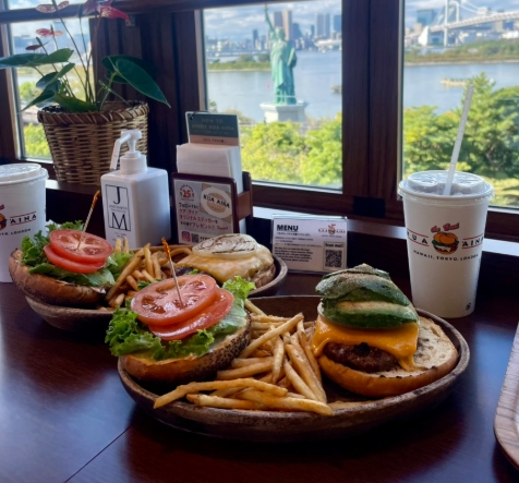 쿠아아이나는 하와이 3대 버거 맛집으로, 일본 내에서도 인기가 높아요. 오다이바점은 특히 뷰 맛집으로 유명해 더욱 기대됐어요.