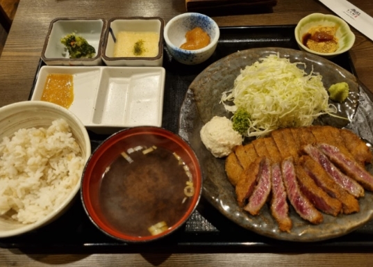 저는 규카츠 단품을 1,630엔에 주문했어요. 한국에서는 2만 원 정도에 먹을 수 있는 가격대인데, 일본에서는 훨씬 저렴하게 즐길 수 있어 좋았습니다