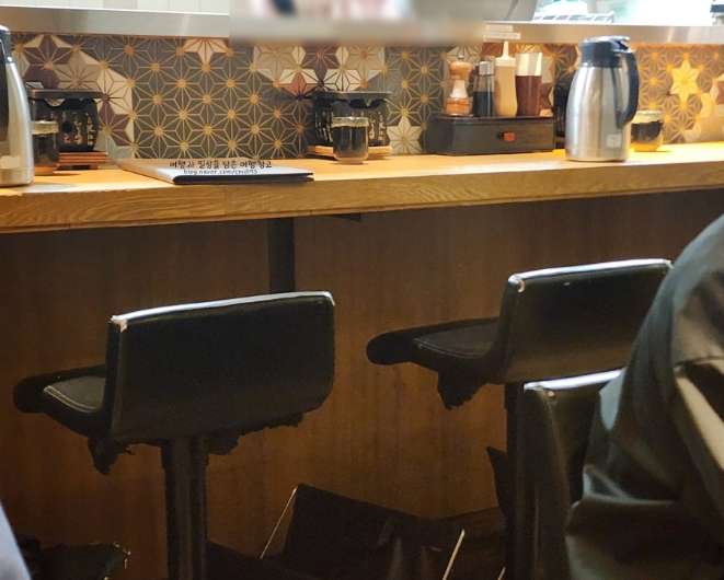 이곳의 내부는 협소한 편이어서, 점심시간이나 주말에는 대기가 있을 수 있습니다. 실내는 바 테이블과 2인용 테이블이 4개 정도 준비되어 있습니다.