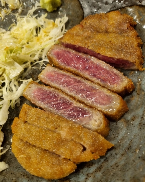 고기는 앞뒤로 구우면서, 자신이 원하는 정도로 익혀서 먹을 수 있어 더욱 맛있습니다. 저는 규카츠를 정말 좋아해서, 구워서 먹는 이 재미가 정말 좋았어요.