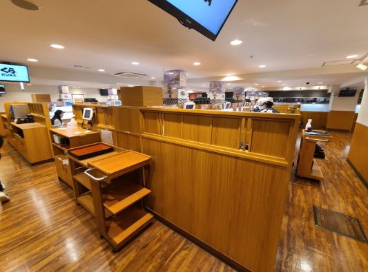 또한, 레일 위에 돌아가는 초밥도 자주 바뀌어 패드로 주문하지 않아도 먹음직스러운 초밥을 바로 선택해 먹을 수 있습니다. 하지만, 주문한 초밥은 레일이 돌지 않기 때문에 테이블에서 따로 받을 때까지 기다릴 수 있어요.