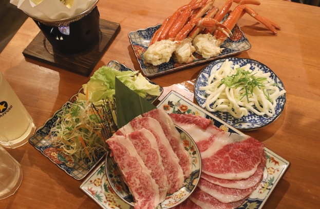 샤브샤브에 들어가는 누들과 게는 고기와 함께 푸짐하게 제공되어 정말 만족스러웠습니다.