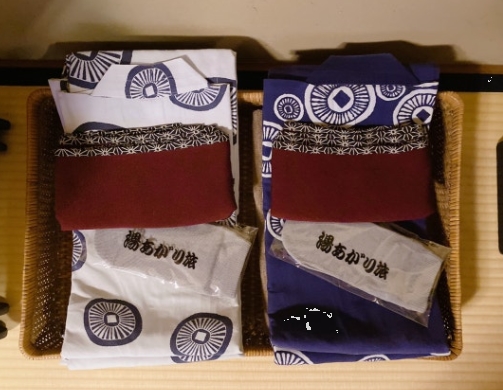 료칸에서는 숙박객을 위해 유카타를 무료로 제공해 주는데, 텐라쿠 객실에도 남녀용 유카타가 각각 준비되어 있었어요. 유카타를 입고 료칸 내부를 돌아다니거나 온천을 이용할 수 있어서 정말 색다른 기분이 들더라고요.