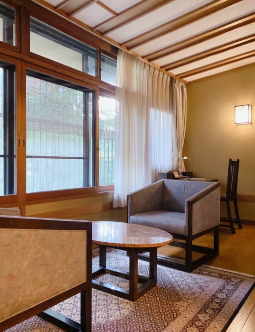 텐라쿠 객실에는 독특하게도 서재 공간이 따로 마련되어 있었어요. 책을 읽거나 티타임을 가지기 좋게 작은 테이블과 의자가 놓여 있어서 고즈넉한 분위기 속에서 여유를 즐길 수 있답니다.