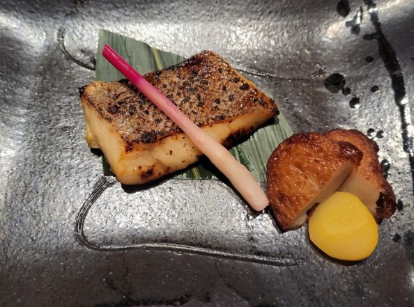 두 번째 코스는 간장으로 간한 달콤한 생선 조림과 두부 반찬이 포함되었으며, 생선 조림은 '카레이'라는 가자미류 생선이 사용되었습니다.