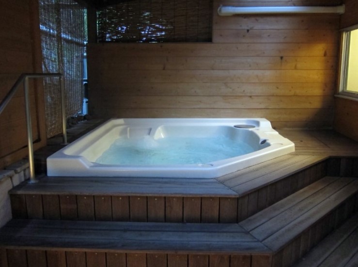두 번째 욕탕은 메인 욕탕으로, 여성 세 명이 들어가도 꽉 찰 정도로 아담하지만 아늑한 공간이었습니다. 욕탕 물은 뜨거워서 추운 날씨에 매우 만족스러웠습니다. 료칸의 정통 매력을 느낄 수 있는 순간이었습니다.