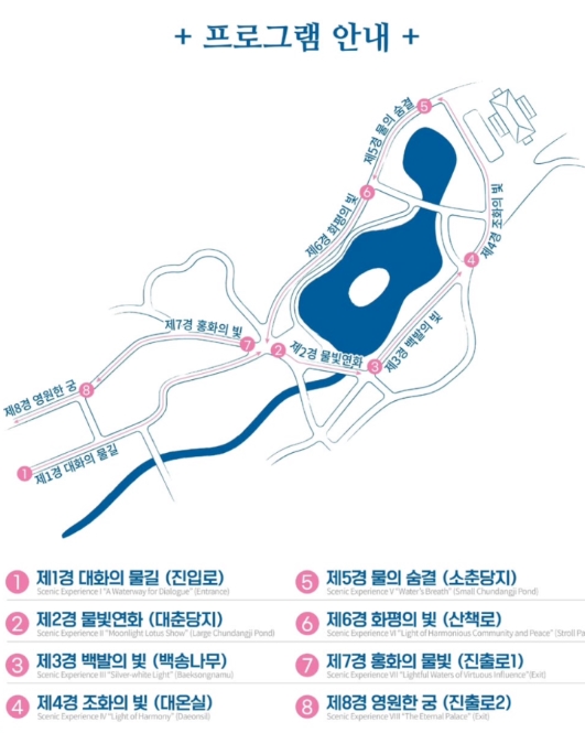 특이사항: 춘당지 메인 미디어아트는 4월 15일 ~ 5월 18일 사이 운영