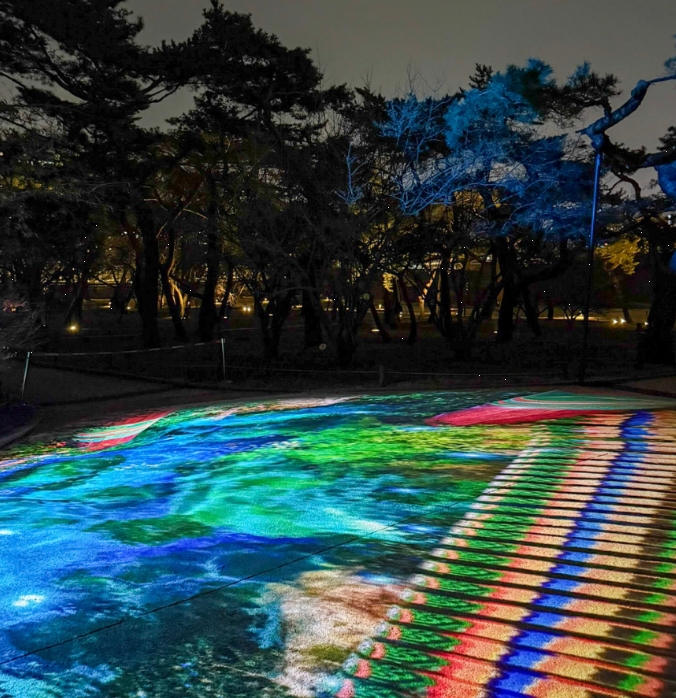 창경궁의 아름다운 붉은빛과 어우러지는 작품이었어요. 궁궐의 기품을 더욱 돋보이게 하는 미디어아트였습니다.