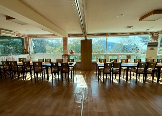 팔공산 근처라 공기가 맑고, 가게 앞에는 넓은 주차장이 마련되어 있어요.