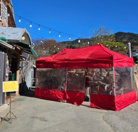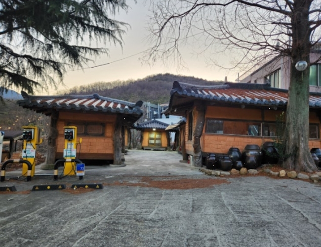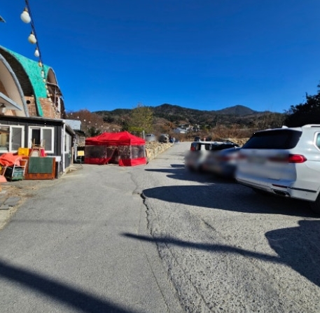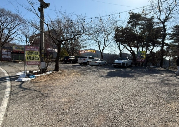 팔공산 근처라 공기가 맑고, 가게 앞에는 넓은 주차장이 마련되어 있어요.