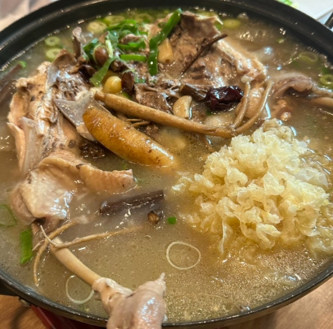그리고 무엇보다 육수가 끝내줍니다. 15가지 한약재가 우러난 깊은 국물이라 그냥 떠먹어도 맛있고, 찹쌀밥을 말아 먹으면 기력이 확 올라오는 느낌이었어요.