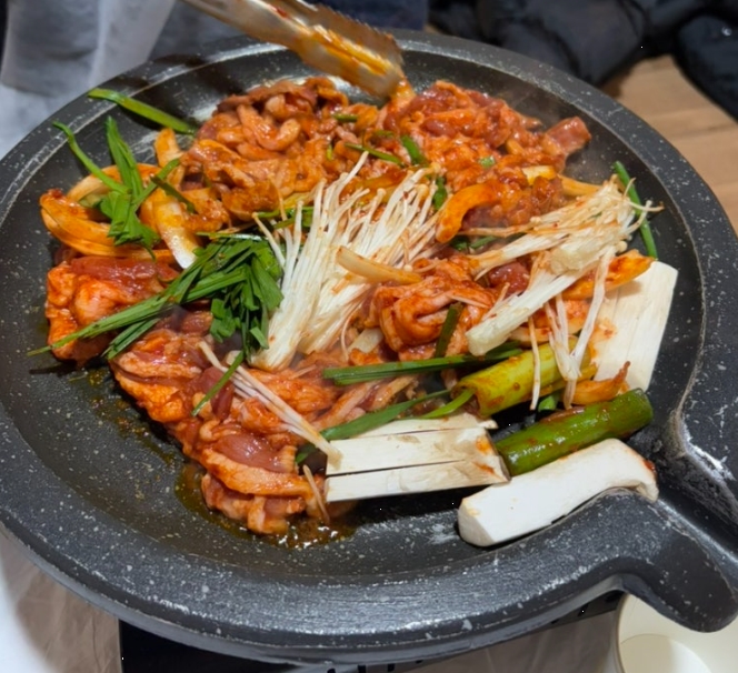 오리고기가 익어갈수록 특유의 고소한 향이 퍼졌고, 한입 베어 무니 쫄깃하면서도 부드러운 식감이 입안 가득 퍼졌습니다.