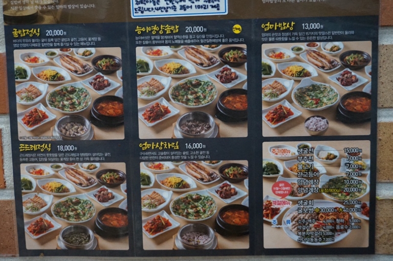 엄마밥상은 기본 한정식 메뉴 외에도 굴, 곤드레, 솥밥 등 다양한 선택지를 제공하는 곳이었어요.