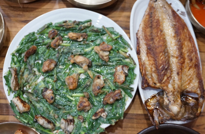 가장 맛있었던 음식은 굴전과 고등어구이였어요. 바삭하게 구워진 고등어와 촉촉한 굴전은 따뜻하게 제공되어 만족스러웠답니다.