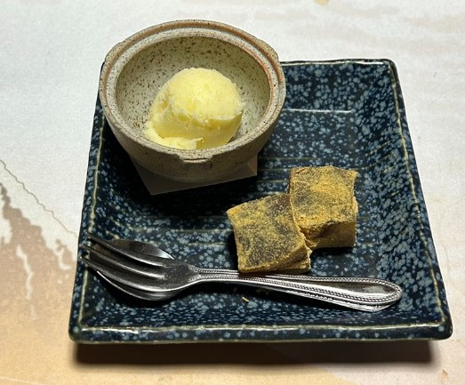 마지막으로, 튀김과 밥, 붉은 된장국이 나오며, 후식으로 모찌와 유자 아이스크림이 제공되었습니다.