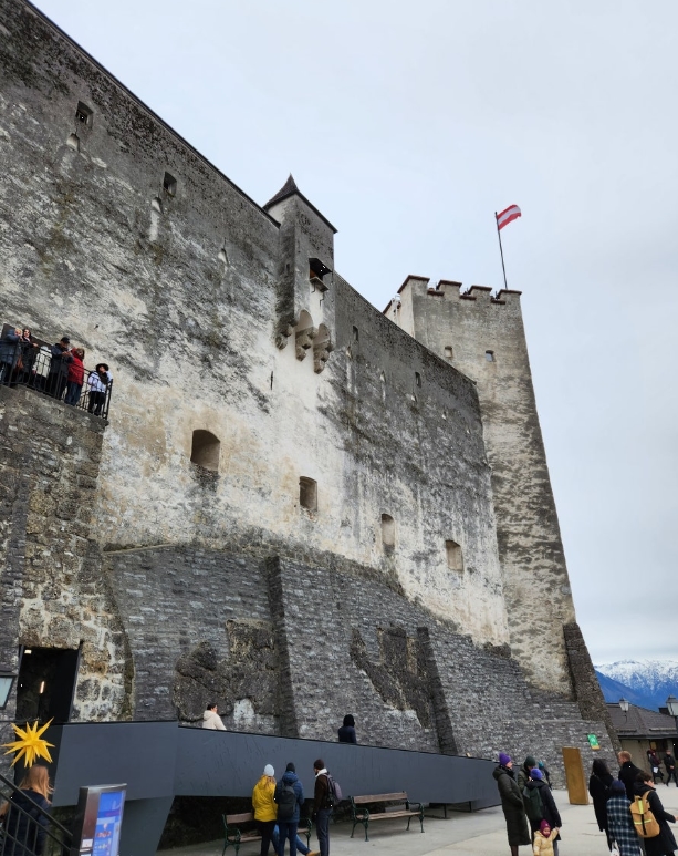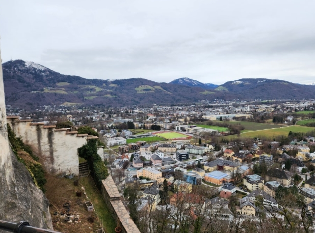 케이블카를 타고 올라가면, 성벽 위에서 바라보는 잘츠부르크 시내 풍경이 너무 멋졌어요.