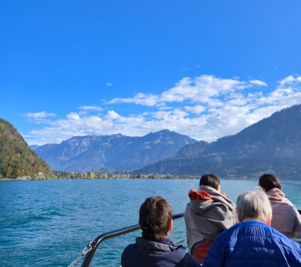 둘째 날 아침은 느긋하게 유람선을 타며 시작했어요. 인터라켄에는 두 개의 호수가 있는데, 브리엔츠 호수와 튠 호수가 있어요.