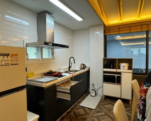 가족 단위로 여행을 하다 보면 간단한 식사를 준비해야 하는 경우가 많은데, 원탕고려호텔 가족탕에서는 기본적인 주방 설비가 완비되어 있어 편리했습니다.