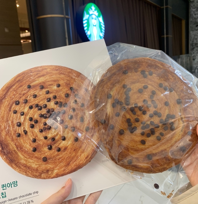 바삭한 페이스트리 사이에 진한 초코칩이 들어 있어 고소함과 달콤함을 동시에 느낄 수 있어요.