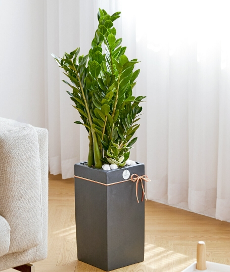 금전수는 이름 그대로 재물과 번영을 상징하는 식물이에요. 두꺼운 잎이 부를 끌어당기는 기운을 가지고 있어 사업장에 두면 좋다고 합니다.