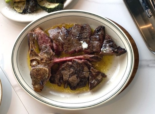 마지막으로 나온 티본스테이크는 두툼하면서도 적당한 굽기로 조리되어 나왔어요. 겉은 바삭하게 시어링되어 풍미가 살아 있었고, 속은 촉촉한 육즙이 살아 있어 정말 맛있었습니다.