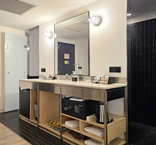 체크인 과정도 매우 신속하고 친절하게 진행됐어요. 프런트 직원들은 영어를 유창하게 구사했고, 숙박 관련 안내도 자세히 해주셔서 편하게 체크인을 마칠 수 있었습니다. 체크인 후, 엘리베이터를 타고 객실로 올라가는 길도 깔끔하고 정돈된 느낌이었어요.