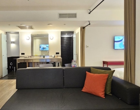 방에 들어서자마자 호텔 방이라기보다는 작은 스위트룸 같은 느낌이었어요. 특히, 거실과 침실이 분리된 구조여서 여러 명이 함께 지내도 불편함이 전혀 없었어요.