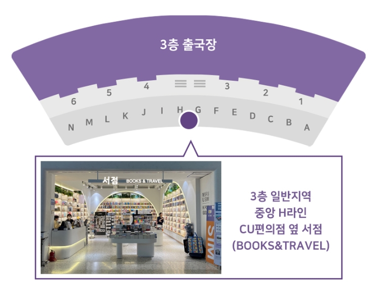 제1여객터미널 (T1) – 출국장 3층 H라인 CU편의점 옆 북스토어