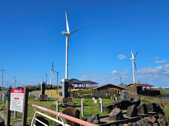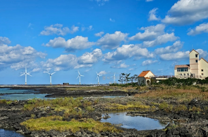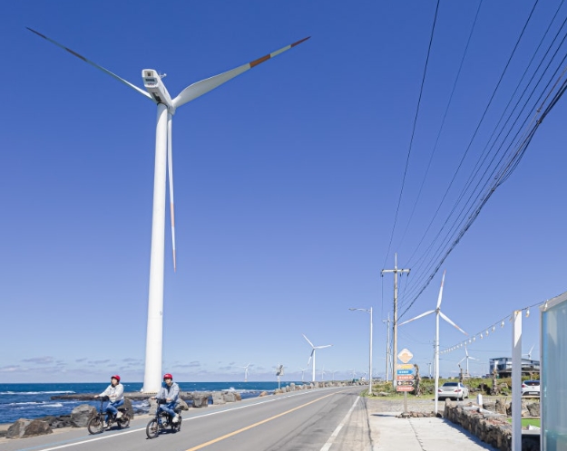 신창풍차해안도로는 제주도의 서쪽에 위치한 곳으로, 푸른 바다와 풍차가 어우러지는 아름다운 경관을 자랑하는데요. 자동차보다 느린 속도로 천천히 주변을 감상할 수 있어 더욱 여유롭고 힐링이 되는 여행이었습니다.