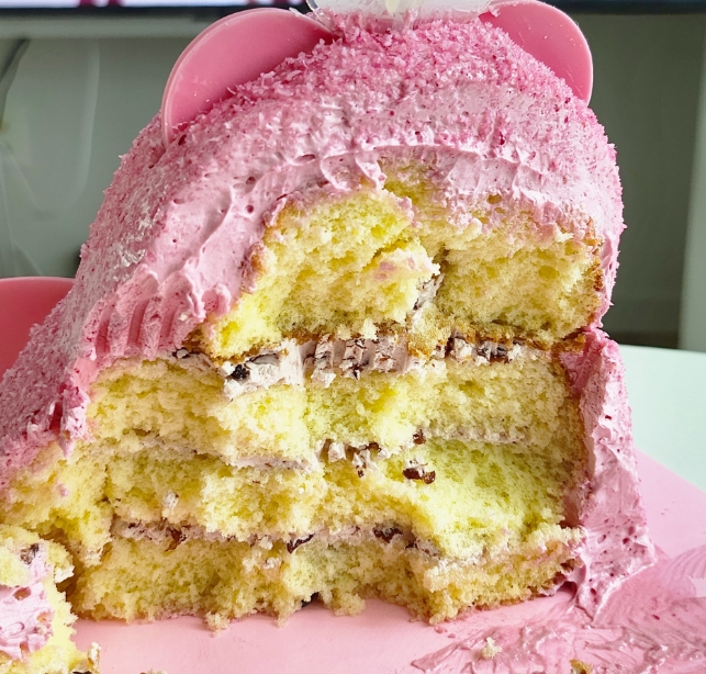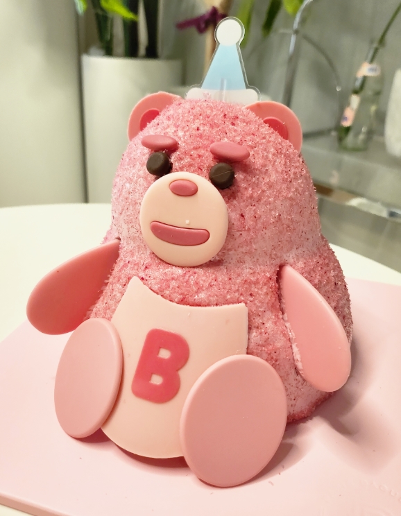핑크빛 벨리곰이 고깔모자를 쓰고 있는 모습은 정말 귀여움의 끝판왕. 마치 대형 벨리곰 팝업 행사에서 봤던 그 벨리곰이 케이크가 되어 돌아온 느낌이라 더욱 반가웠어요.