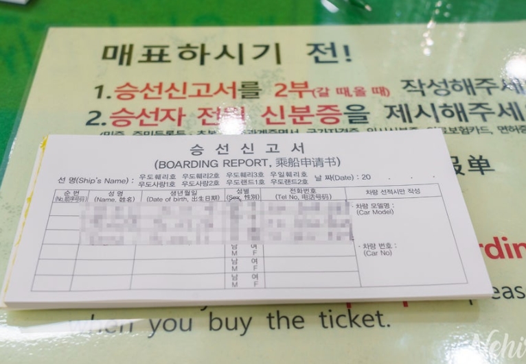 배를 타기 전에 승선 신고서를 작성해야 하므로, 성산항에 도착한 후 신분증을 지참하고 매표소로 가서 신고서를 작성한 뒤 승선을 준비합니다. 이 점은 꼭 체크해야 할 부분이므로, 배편 출발 시간에 맞춰 미리 도착하는 것이 좋습니다.