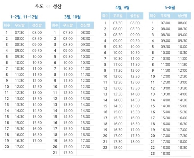 우도 여행의 첫 번째 단계는 성산항에서 배를 타고 우도로 향하는 것이죠. 성산항은 우도로 가는 배편의 출발점인데, 이 배편 시간은 꽤 간단해서 기억하기 좋습니다.