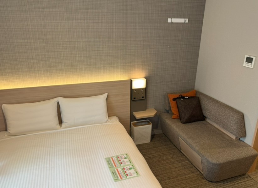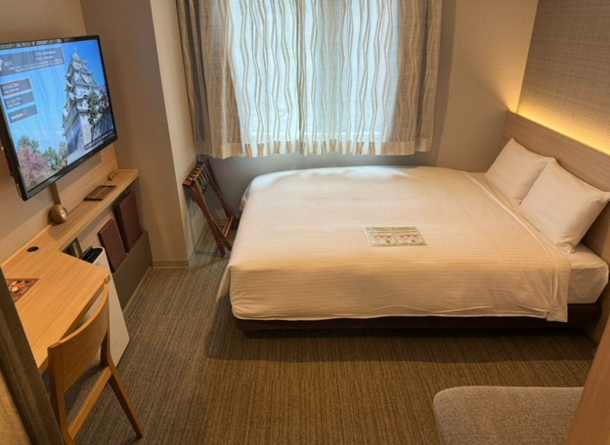 저희가 이용한 객실은 더블룸으로, 비록 크지는 않았지만 깔끔하고 효율적으로 배치된 공간 덕분에 편안한 여행을 할 수 있었습니다. 객실 내에는 화장실, 세면대, 샤워실이 각각 분리되어 있어 편리했으며, 공간이 넉넉하지 않음에도 실용적인 설계가 돋보였습니다.