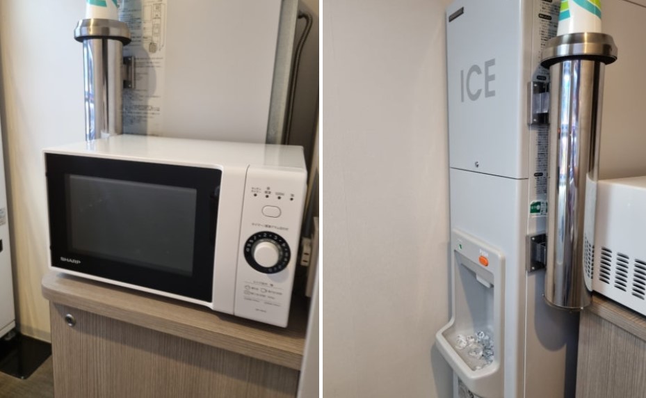 또한 자판기, 얼음 정수기, 전자레인지, 세탁실도 함께 마련되어 있어 장기 투숙객이나 세탁이 필요한 여행객에게도 편리한 시설입니다. 자판기에서는 다양한 음료를 구매할 수 있었고, 1층에 바로 편의점도 있어 필요할 때 언제든지 간편하게 물품을 구입할 수 있었습니다.