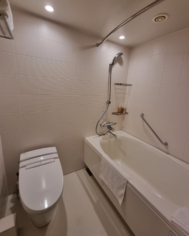 저희가 예약한 객실은 욕조가 없고 샤워 부스만 있는 곳도 있으니 참조하세요. 샴푸, 컨디셔너, 바디워시 모두 다회용기에 제공되어 친환경적인 요소도 느낄 수 있었습니다.