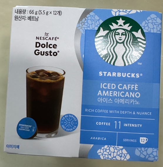 마지막으로 소개할 제품은 돌체구스토 스타벅스 아이스 아메리카노입니다. 이 제품은 일반 캡슐과는 달리, 아이스 전용으로 제작되어 뜨거운 물에 추출하지 않고도 시원한 맛을 그대로 느낄 수 있어요.