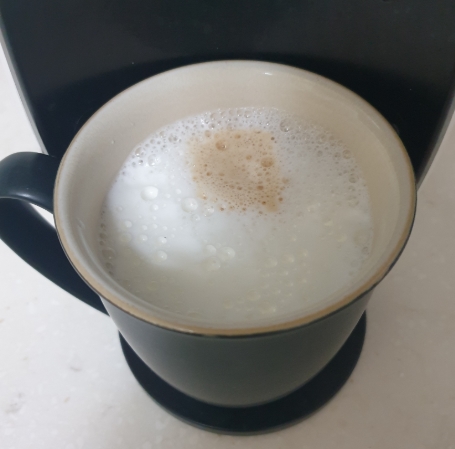 은은한 바닐라 향이 느껴지는 부드러운 라떼 한 잔이 집에서도 이렇게 간편하게 만들어지다니 감탄스러웠습니다. 단맛이 강하진 않기 때문에 더 달콤한 맛을 원하시는 분들은 바닐라 시럽이나 설탕을 약간 추가하셔도 좋을 것 같아요. 개인적으로는 바닐라의 향과 커피의 균형이 매우 좋았어요.