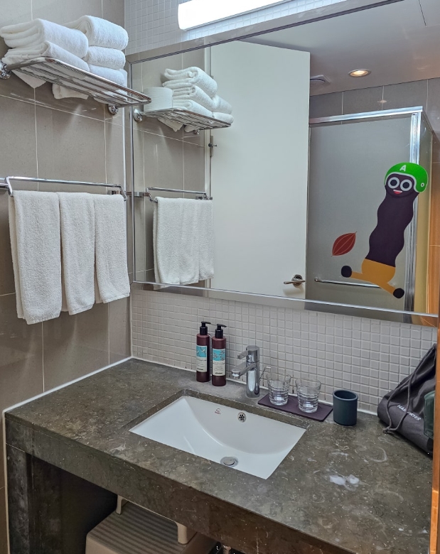 수건도 넉넉하게 준비되어 있었고, 욕실 용품은 리필형으로 비치되어 있어 친환경적인 부분까지 고려한 점이 마음에 들었습니다.