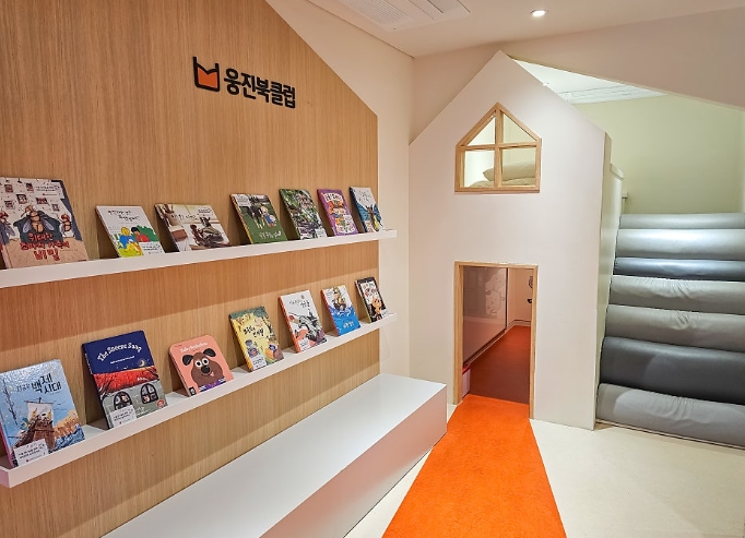 한쪽에는 웅진북클럽의 책장도 있어 다양한 동화책을 볼 수 있게 되어 있었고, 전체적으로 어린이와 가족을 위한 세심한 배려가 곳곳에 녹아 있었습니다.