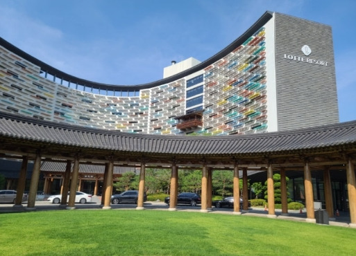 아이를 위해 키즈룸이 마련된 리조트를 예약했다고 해서 별 기대 없이 부여 롯데리조트로 향했습니다. 사실 처음엔 ‘부여에 리조트가 있어?’ 라는 생각이 들 정도로 큰 기대는 없었거든요. 그런데 도착하자마자 입구부터 제 예상을 완전히 깨트리는 풍경이 펼쳐졌습니다.