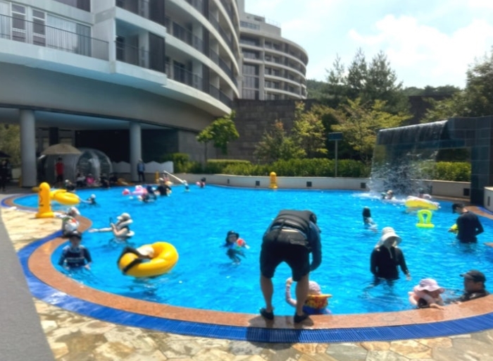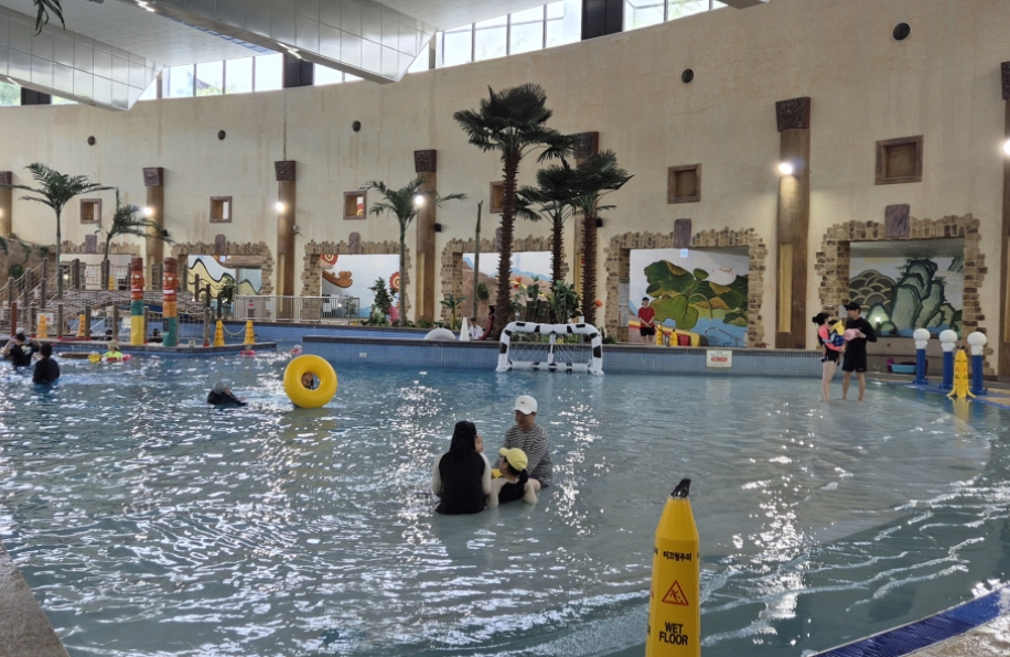 실내 풀장에서 나가면 연결된 야외풀도 있었어요. 겨울엔 이용하기 어려울 수도 있지만, 날씨가 따뜻한 날에는 야외에서도 상쾌하게 물놀이를 즐길 수 있어요. 여름에는 햇살 아래에서 놀기에 최고의 장소일 것 같아요. 수심도 깊지 않아서 아이들도 안전하게 놀 수 있었답니다.
