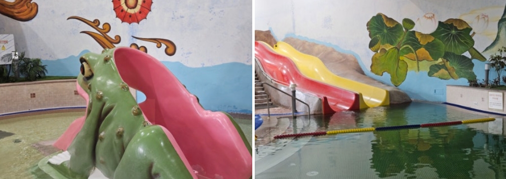 유아풀 옆에는 체온유지탕과 건식 사우나가 있어서 물놀이 후 추위를 느낄 때 몸을 따뜻하게 데울 수 있었어요. 특히 바닥이 따뜻하게 유지되어 있어서 아이가 바닥에 앉아서 쉬는 걸 정말 좋아했답니다. 바닥에 앉아 과일 먹으며 잠깐 쉬는 그 모습이 어찌나 귀엽던지요