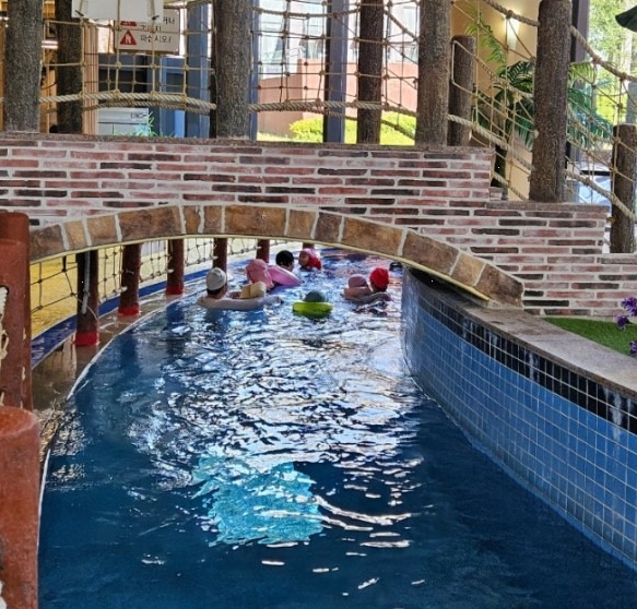 저희 가족이 제일 오래 머물렀던 곳은 바로 따뜻한 물이 흐르는 유수풀이었어요. 아이를 안고 둥둥 떠다니는 느낌이 정말 편안하고 재밌었고, 물살에 몸을 맡기며 흐르는 시간이 마치 휴양지에 온 듯한 기분이 들었어요. 덥지도 춥지도 않은 적당한 온도라서 아이도 무리 없이 즐길 수 있었습니다.