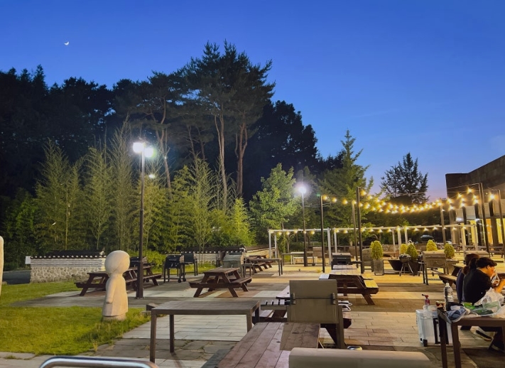 하루를 알차게 보내고 난 저녁, 리조트 야외에 마련된 정경마당 바베큐장에서의 저녁 식사는 말 그대로 힐링의 결정판이었습니다. 바베큐 체험은 사전 예약제로 운영되며, 테이블 1세트당 5만원의 이용료가 있습니다.